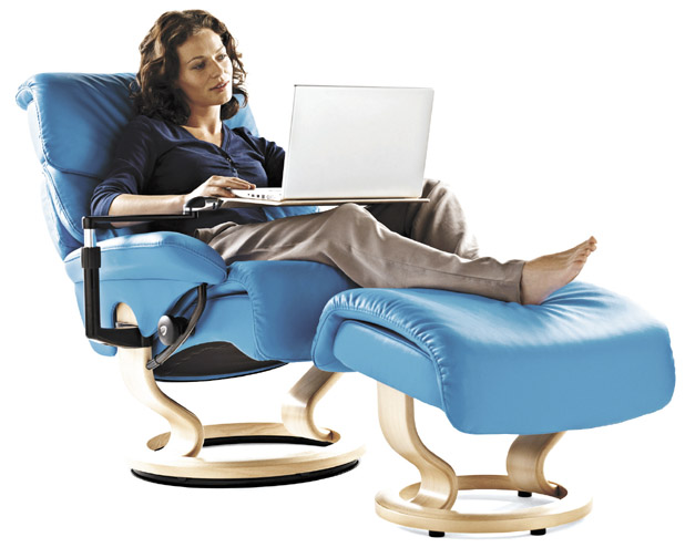 The original Stressless chair from Norway offers a revolutionary design that supports your lower back and head in an upright or reclining postion. Available in different sizes to tailor fit your body.
