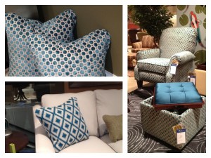 In upholstery, we saw a lot of eye-popping colors from tangerine to jewel-toned teals and blues, as well as the new neutral, grey!