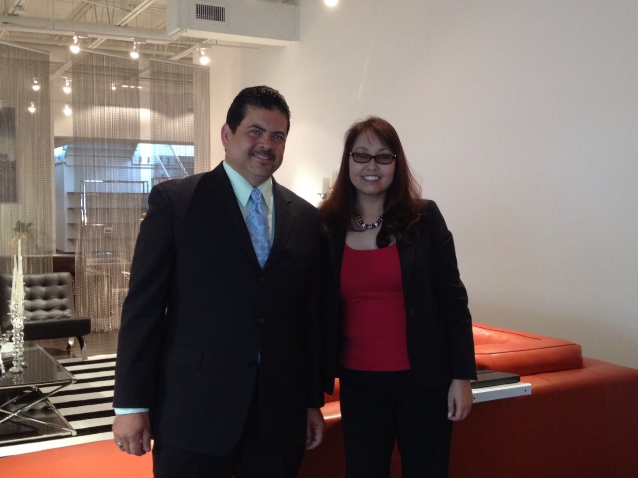 Violino Representative Bill Jenks and HomeWorld Buyer Caroline Oshiro-Otsuka in Violino’s beautiful new showroom.