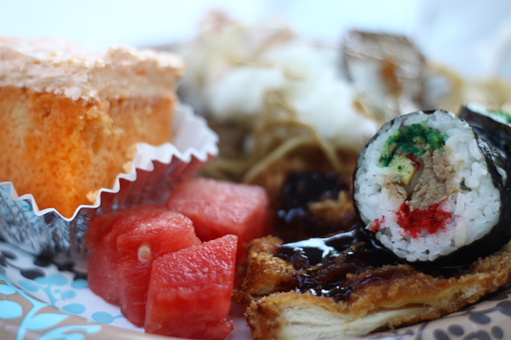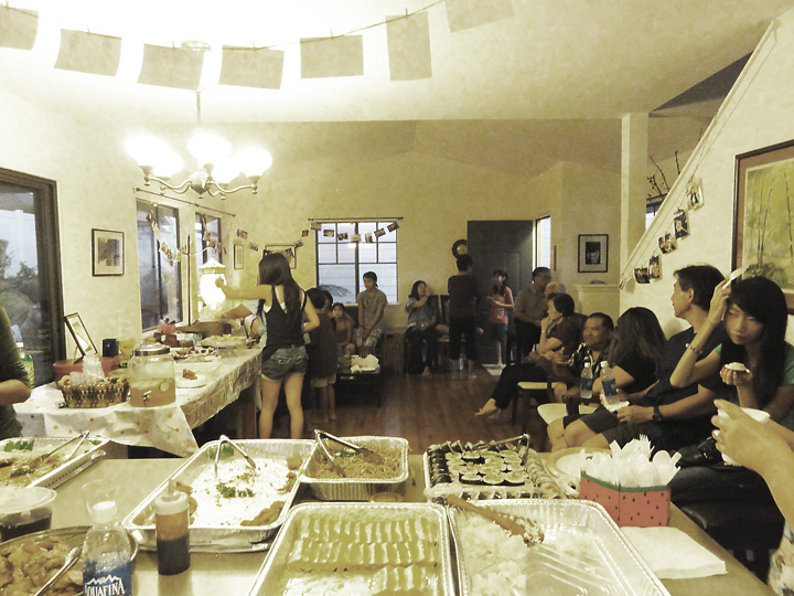 But of course, parties (especially in Hawaii) are all about FOOD! Some of the favorites were chicken katsu, sushi, baked salmon, and Japanese potato salad. For dessert, we had red velvet cupcakes (thanks Gayle), dreamsicle cake, lemon bars, and brownies. Our nonalcoholic party also featured a Ginger-infused Ginger Ale with limes and oranges fresh from our garden.