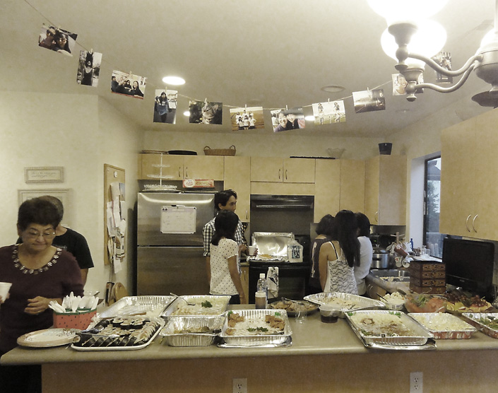 The photo display was a creative alternative to ordinary party streamers. Photo by Garrin Miyashiro.