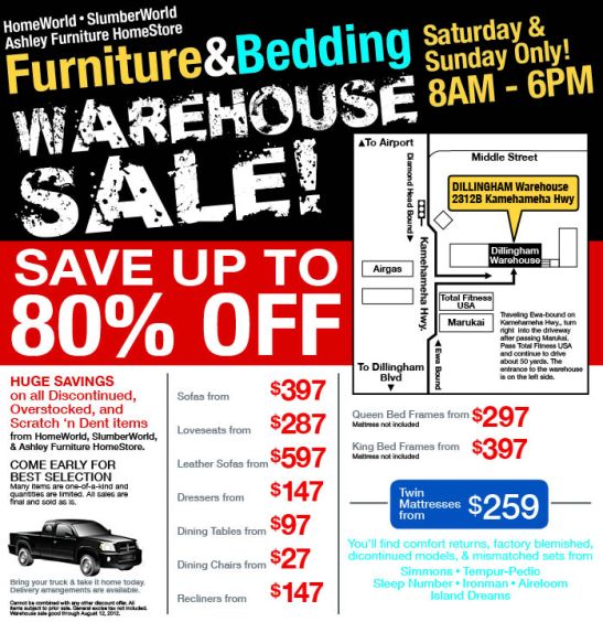 1. If you’ve been to our previous Warehouse Sale, please note that this sale is at our old Dillingham location at 2312B Kamehameha Hwy., near Marukai. Here’s a link for directions.