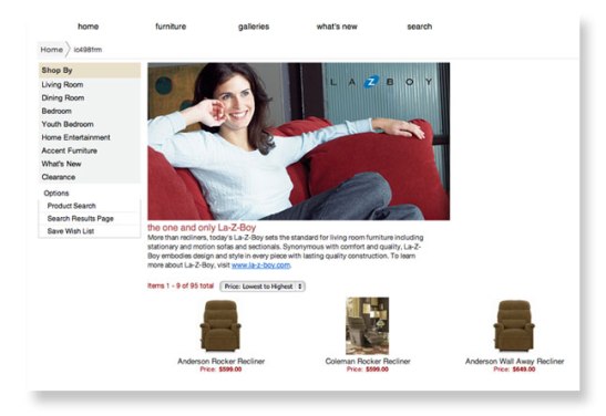You can search our website by gallery page, such as La-Z-Boy or Natuzzi Editions. Products can be sorted by name or by pricing order.
