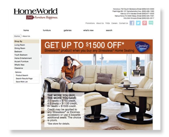 With that being said, we at HomeWorld are absolutely thrilled to announce our new, revamped website, homeworld.com. Our site showcases hundreds of furniture choices including sofas, sleepers, massage chairs, coffee tables, dining sets, bedroom sets, youth bedroom, home entertainment, accessories, and more.