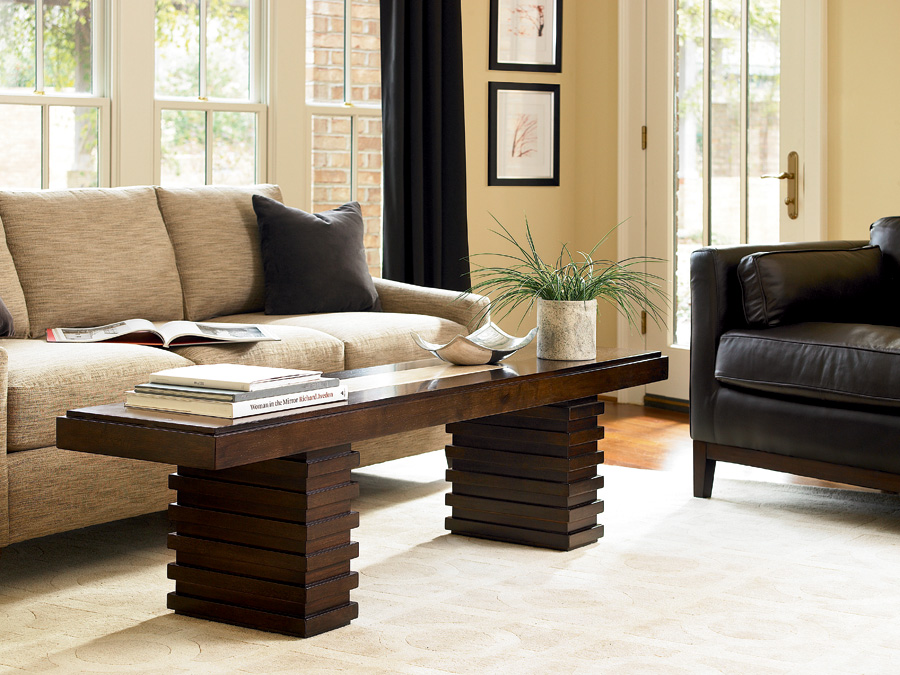 To finish a room, add occasional tables to your living area. The Latitude cocktail table has architectural design features that showcase its bold design.