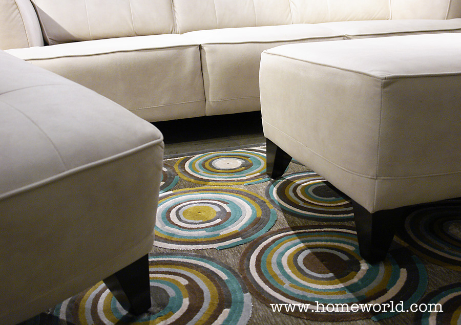 Malabar Area Rug (5’3″x7’7″) is made with 100% wool. By Kalora. Shown with the California Sectional by GuildCraft.