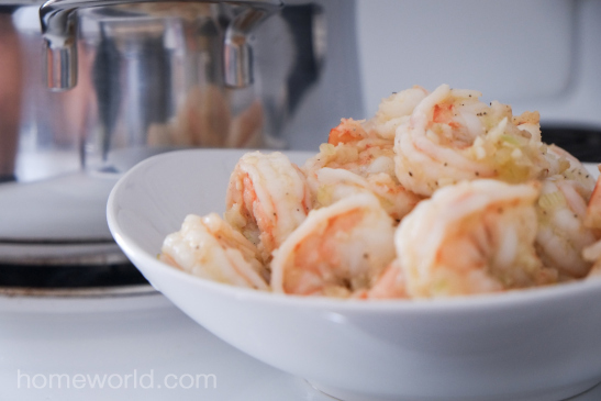 Season the shrimp with salt and pepper, to taste, and add them to the skillet. Cook until the shrimp are pink and cooked through about 3 to 4 minutes. Remove the shrimp and chop into 1/2-inch pieces. Set aside.