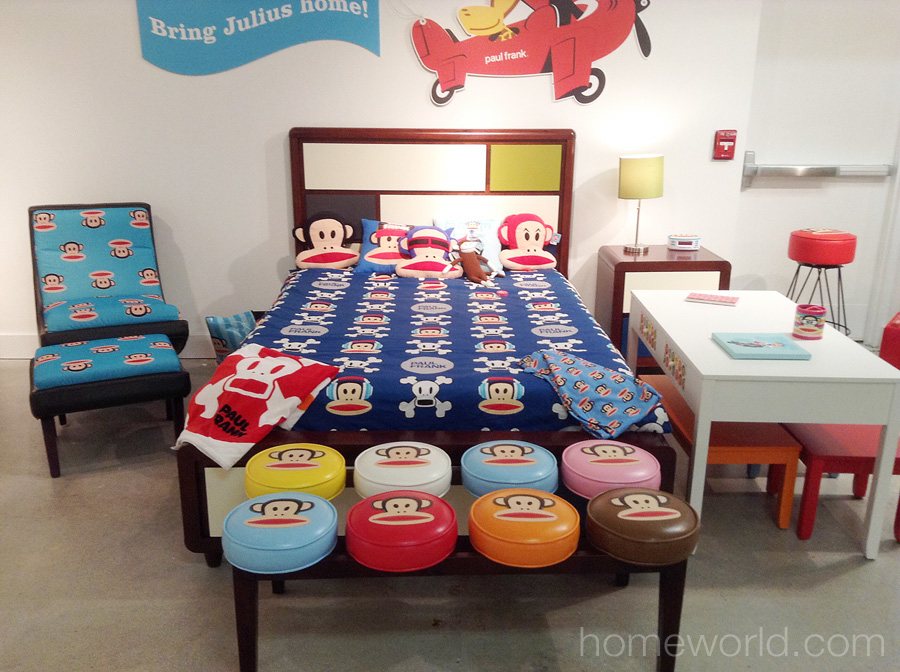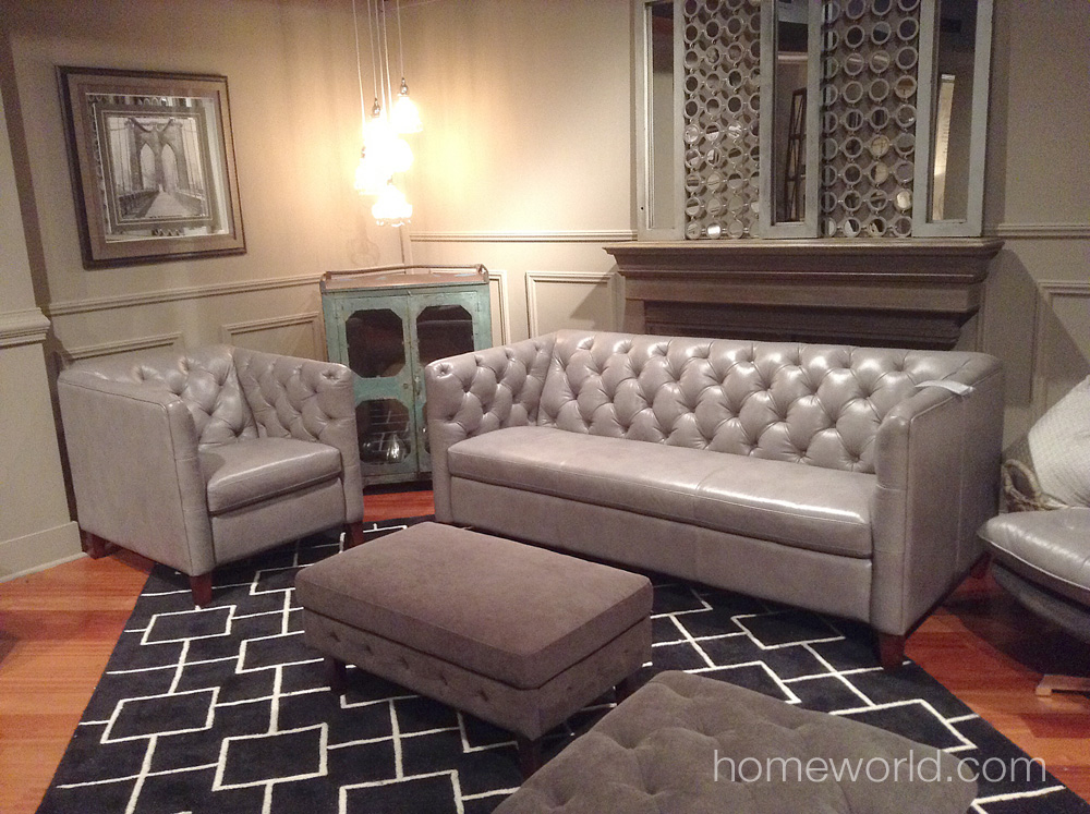 Marilyn: Everything! Just being able to take in all the trends and colors. At this market I noticed a lot of blue, teal, purple, and orange. There was a big emphasis on small scaled furniture. Stationary upholstery tended to be smaller in scale with thinner silhouettes. Motion furniture was still plush but you could see that there has been a demand for comfort with a more updated look. At HomeWorld, I work with a lot of bedroom, dining, and office vendors which are a part of the casegoods category of furniture. I took a special interest in the finishes on different casegood collections. Rustic and reclaimed pieces were being mixed with a lot of grey tones. Natural wood finishes with heavy wood grains were being accented with distressing. I found this very interesting when compared to the San Francisco market which had an emphasis of dark browns and heavy finishes.