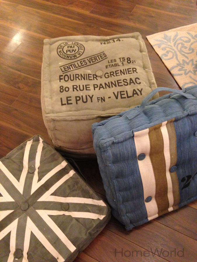 Floor cushions can be a convenient seating option if space is very limited. These Marco floor cushions and cubes are available in several prints and sizes. Price: Floor Cushion $89, Cubes $119.