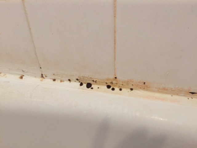 Then one day, I saw someone on pinterest saying she removed mold by soaking a sheet of paper towel in bleach and letting it sit on the moldy grout area for 15 minutes. I had to try it.