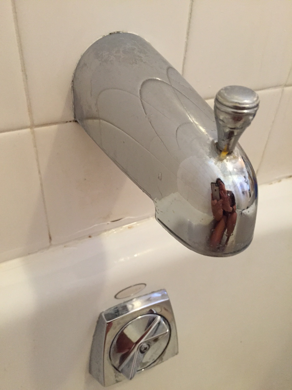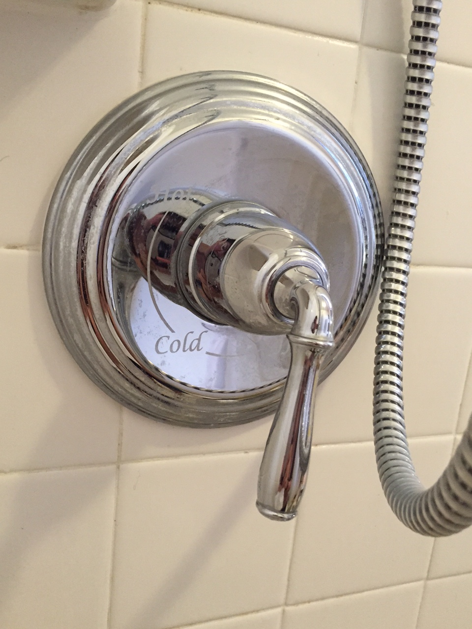 Thank you to everyone who read the last quick tip about removing mold from grout in your shower. Hope you got to try it and found it helpful. If you missed it, you can read it here. This week, let’s look at chrome fixtures in the shower. Mine are dull and have visible, horrible soap scum. beforehandledull I’ve tried various of methods I saw online, but none worked to my satisfaction. I guess my hard water stains are extra stubborn! beforefaucet But then I found advice at diyconfessions.com that worked using common household ingredients. First, I removed the mildew around my fixtures using my trusted bleach with paper towel trick.