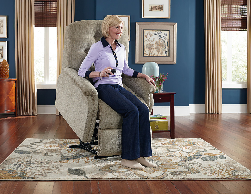 Lift chairs make it easier to get in and out of your recliner. Simple push a button to gentle lift the chair to a standing position.