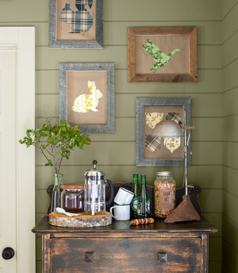 Fabric animal silhouettes in simple frames add whimsy to this wall. Photo source: countryliving