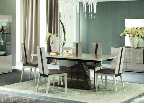 Ultra contemporary Teodora collection has a light elm eco veneer with Emperador Stone inlay for a stunning look.